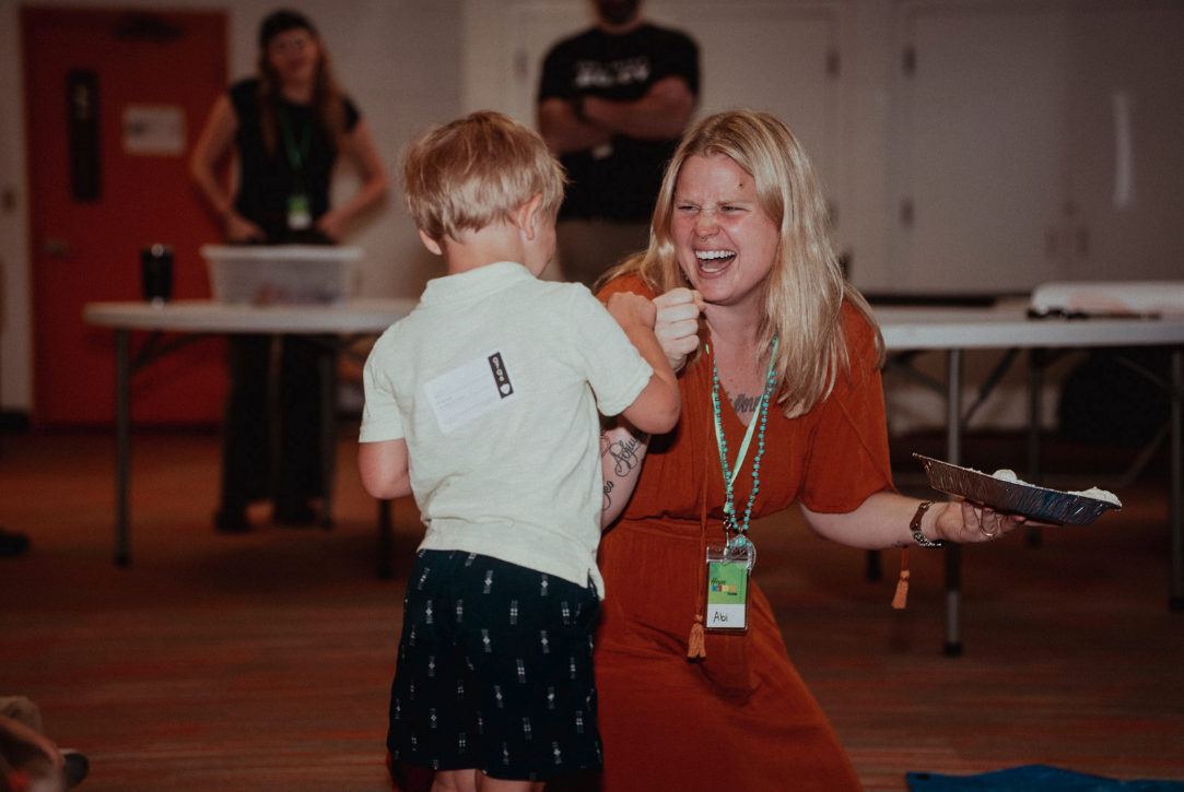 Kids check-in is located downstairs. If you need help, just grab one of the greeters wearing a badge and they’ll get you where you need to go!